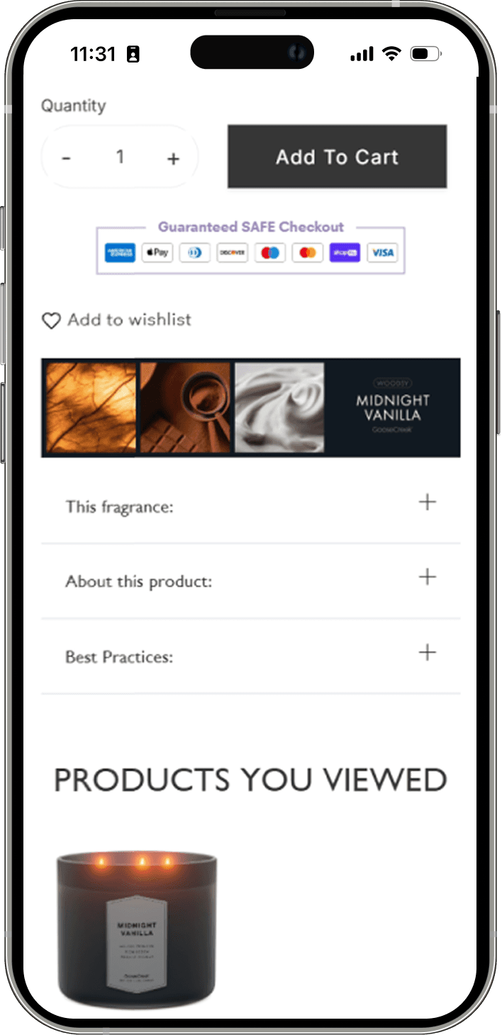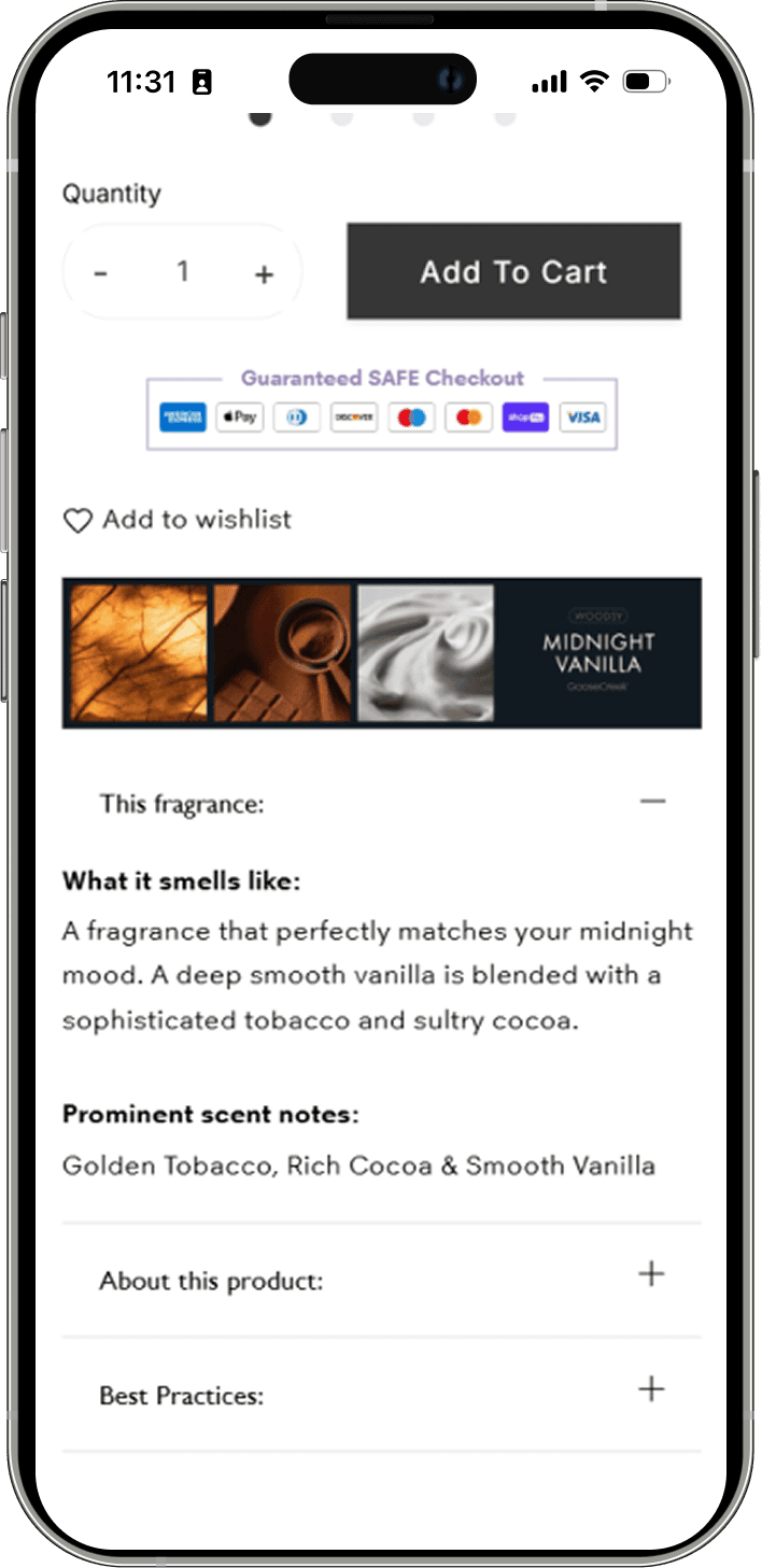 Hypothesis:By keeping the “This Fragrance” accordion open by default, we expect to see higher engagement with product information, a smoother user experience, and more conversions, as users won’t need to take additional action to access key details before adding to cart.