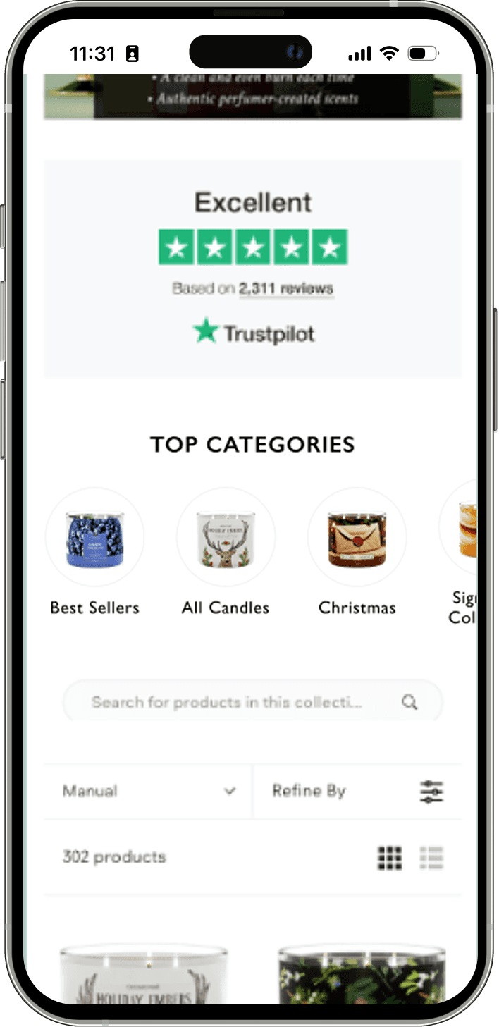Adding top categories to collection pages helped users find products faster. This shortcut reduced steps in the journey and improved both CVR and revenue.