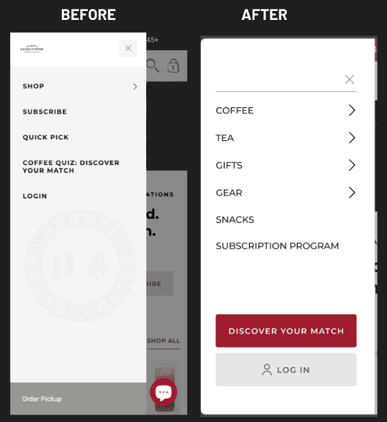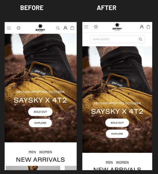 All the numbers support this. Collapsing key filter categories on a collection page and redesigning input fields got us a 12.65% increase in conversions. Displaying the search bar by default on the homepage led to a 13.25% lift. A complete update of the main menu, including improved placement of the categories and subcategories actually drove an increase of 21.53% in conversions.