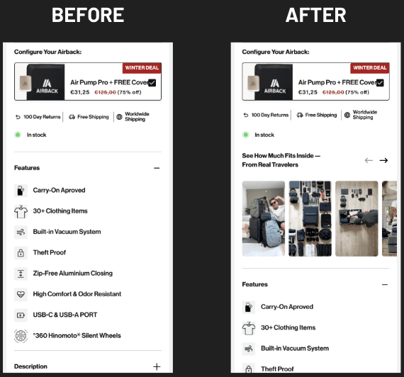 When we tested adding user-generated content for one of our clients, we positioned authentic social proof strategically in the purchase flow and the results were significant.
