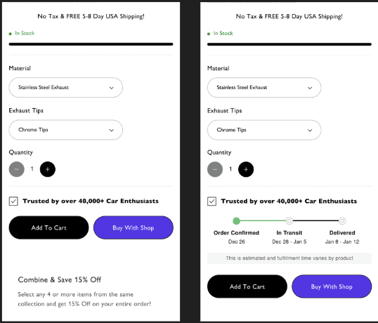 We tested this with a client by adding shipping estimates directly on product pages. It was a simple change that allowed users to easily see when they would receive their order before even adding it to their cart. No more hunting down that information. No more uncertainty about the delivery details.