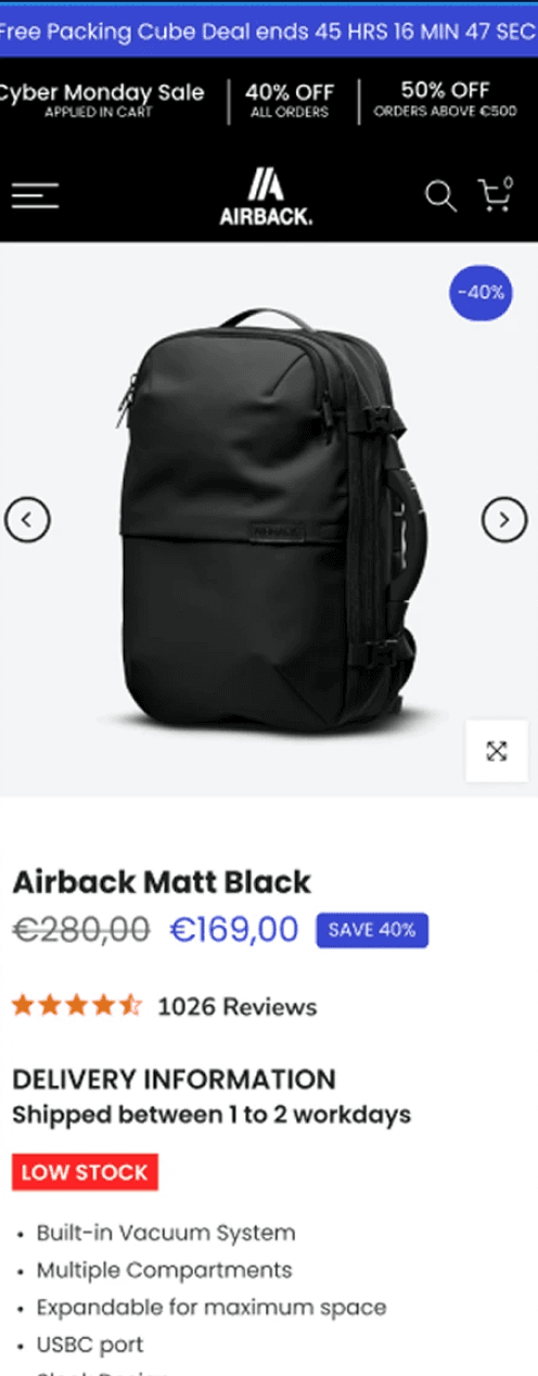 Integrating clearly defined Unique Selling Propositions (USPs) will enhance customer understanding of AirBack products, leading to increased conversion rates. Streamlining the page by removing distractions will reduce cognitive load, allowing customers to focus on key benefits. Emphasizing powerful product benefits while eliminating weaker ones is expected to enhance perceived value and engagement. Adding prominent "Add to Cart" (ATC) buttons will facilitate quicker purchasing decisions, potentially increasing add-to-cart rates and overall sales.
